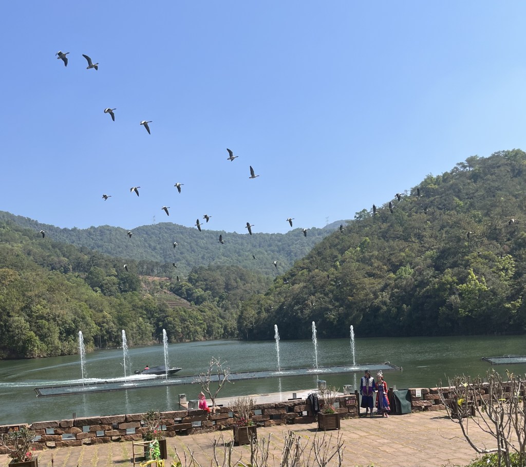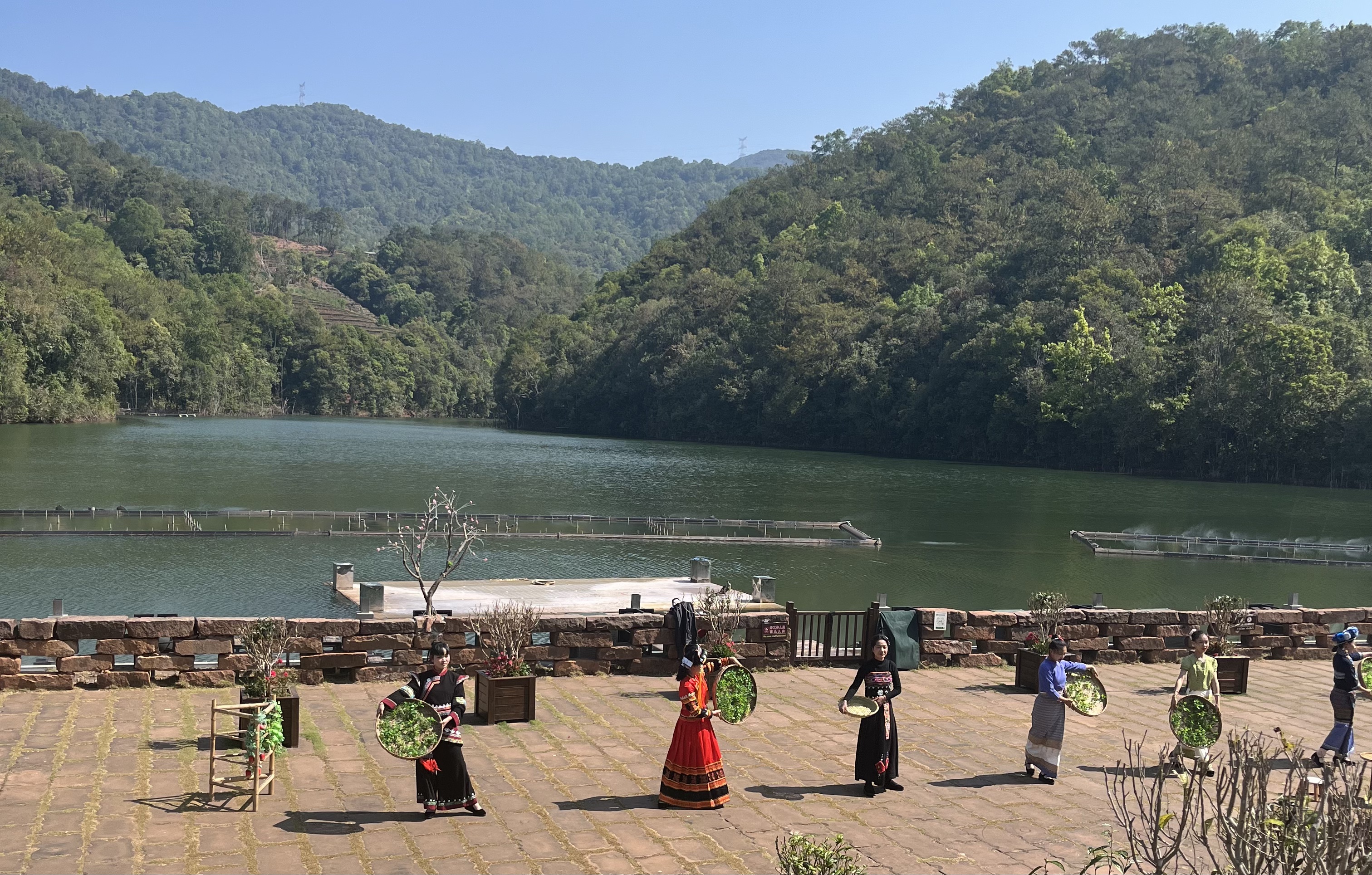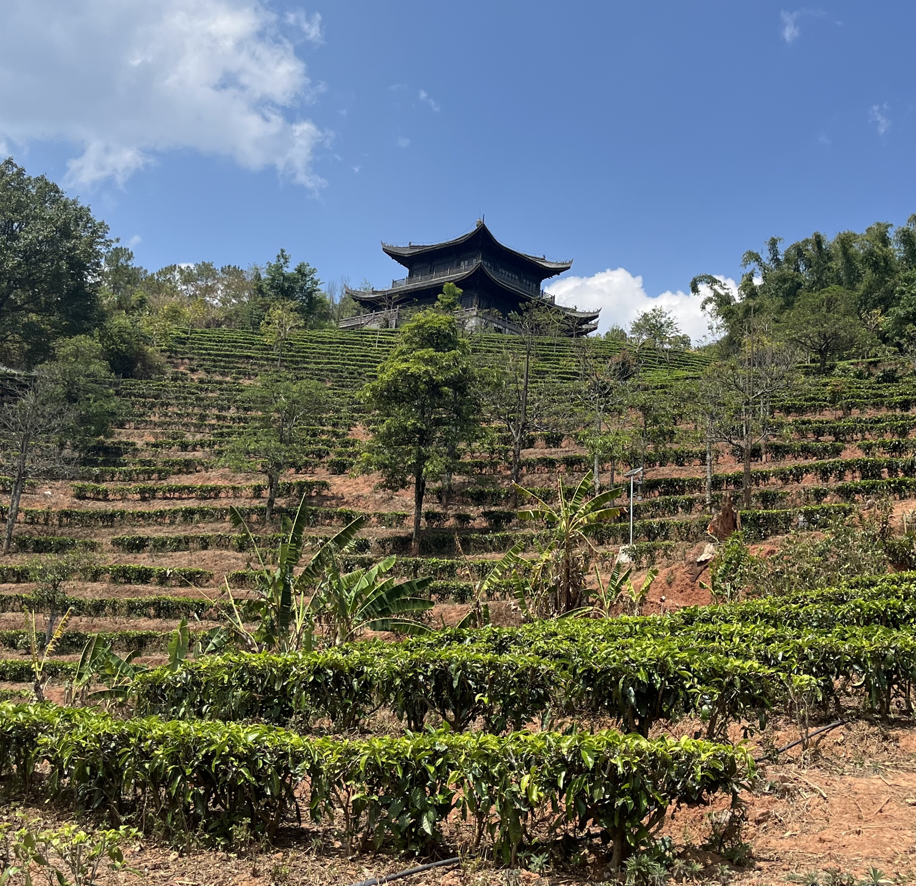 Way down south now, almost at the border with Burma, Laos and Vietnam, the last stop investigating the Tea Horse Road (THR). It is impossible to imagine why any road, TH or otherwise would choose this route through the mountains where the terraces cling desperately to the vertiginous sides. On the other hand the 3 hour train journey from Kunming (again!!) has been almost totally through tunnels, surfacing only briefly for the 4 or so stops en route. The engineering commitment to bring a train into the middle of nowhere is immense, so there must be a reason. Pu’er clearly isn’t it: There is no effort to indicate any interesting sights en ville, and even the obligatory Ancient City is impossible to find and consequently deserted. Gratified though that the good burghers (rather unkindly described in the book I’m reading as ‘morose, supine and rather unfriendly’*) have elected to confine all the Tea Horse Road hoopla to the outskirts, leaving them in peace to carry on languidly preparing Pu’er tea for sale (I never see them actually selling any). All in all an absolute backwater.