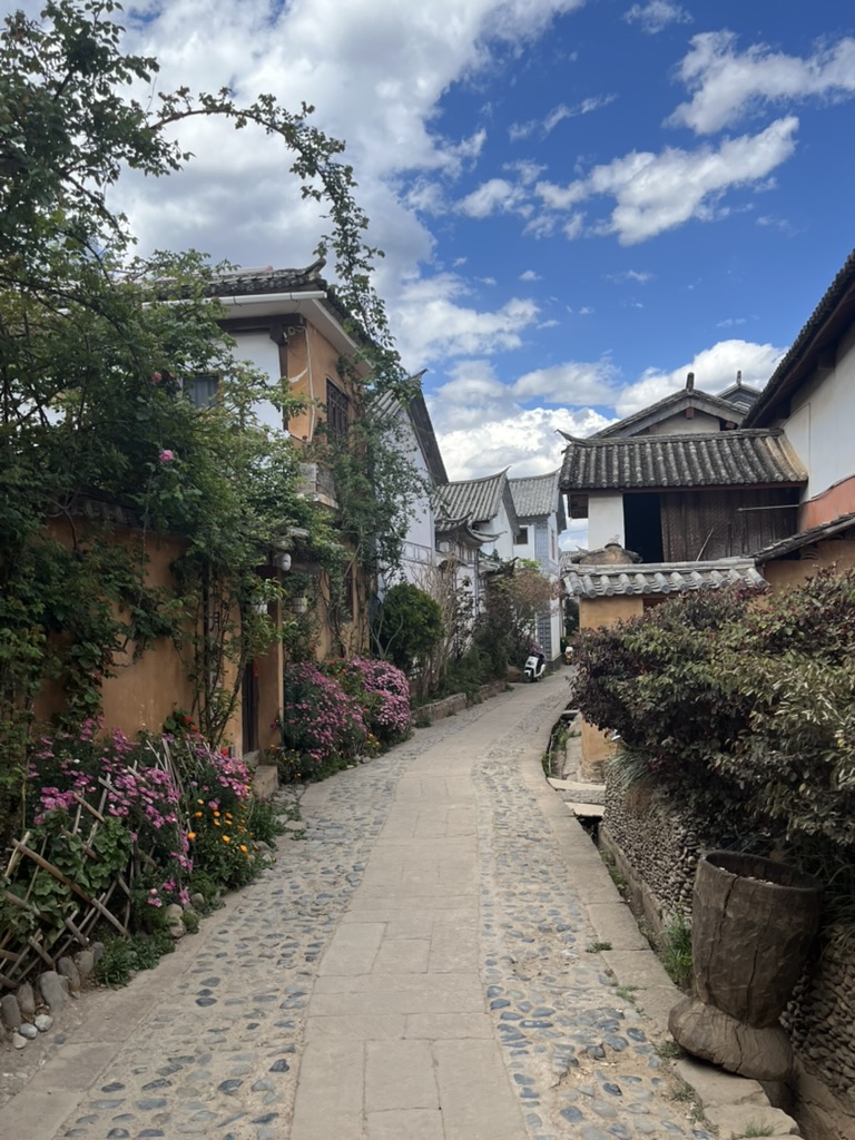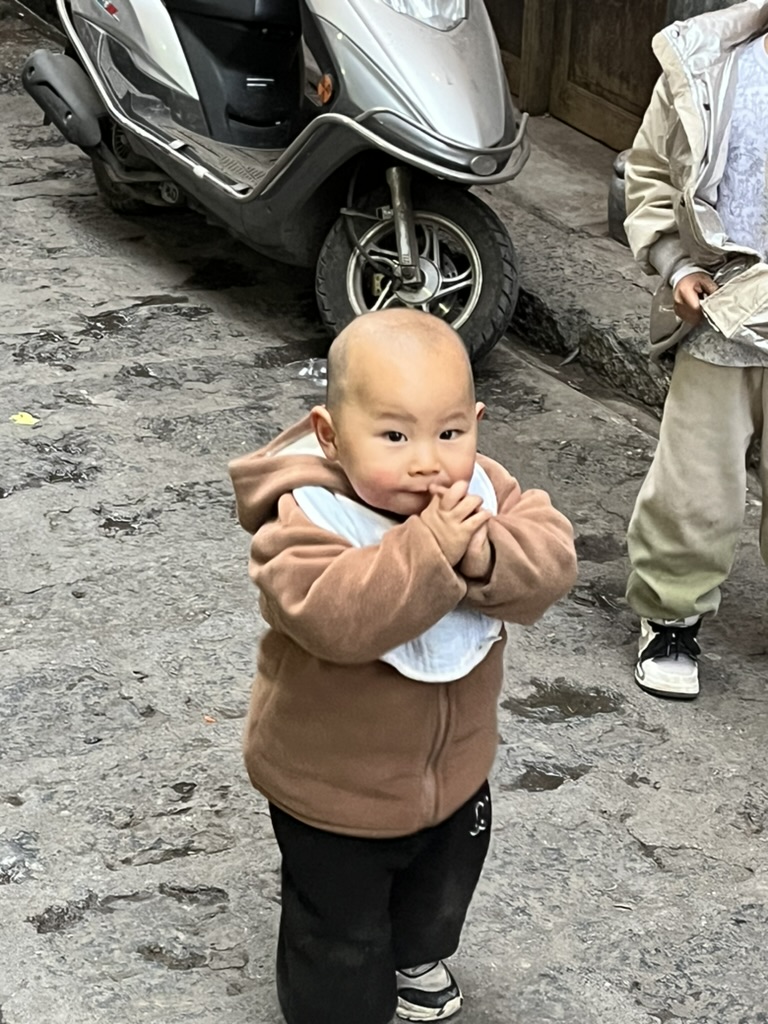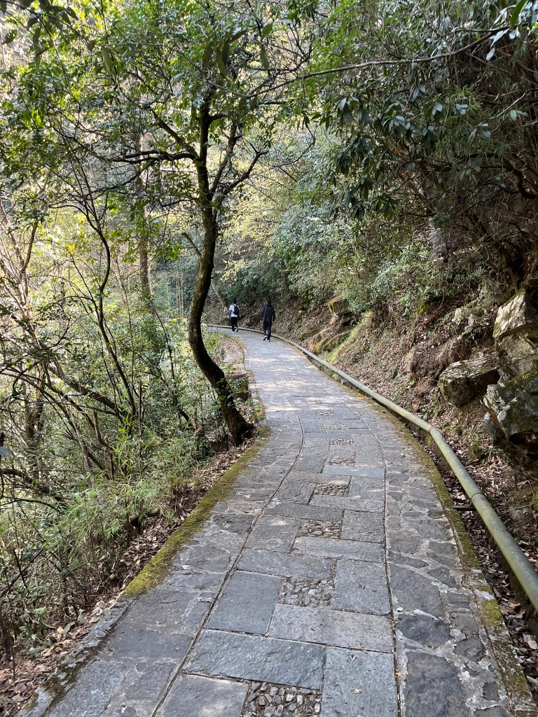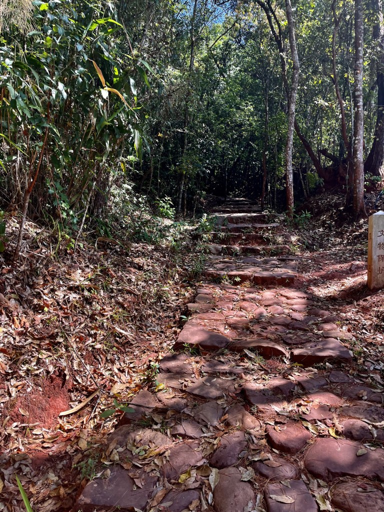 Conveniently enough one of the longest stretches of the bona fide Tea Horse Road actually does pass through here. Also conveniently it appears to begin round the back of one of the inevitable temples (not shown). Fortified with a swig of water I set off up the road to the other inevitable temple up the mountain. Questions I do not ask myself: (1) What is the semantic difference between ‘passes through’ and ‘starts from’ and is it important? (2) Given how much harder the Tea Horse Road Tourist Area has worked to make this an achievable experience for all comers, where is the map laying out the route to this anticipated temple? (3) What do those trail markers say? (4) Where is everyone?
