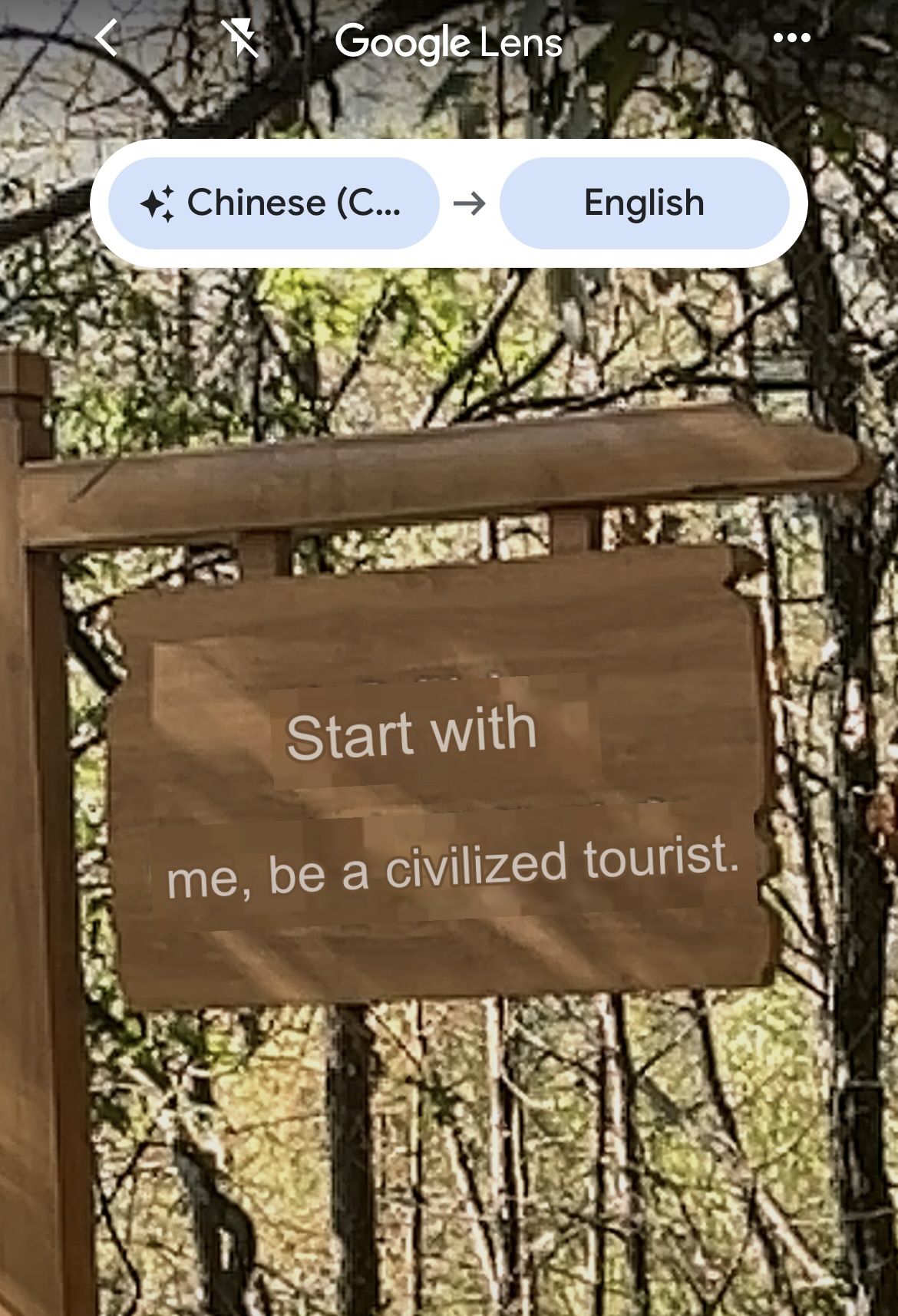 Today though, I dutifully set my phone so Google lens can translate the signs beside the trail