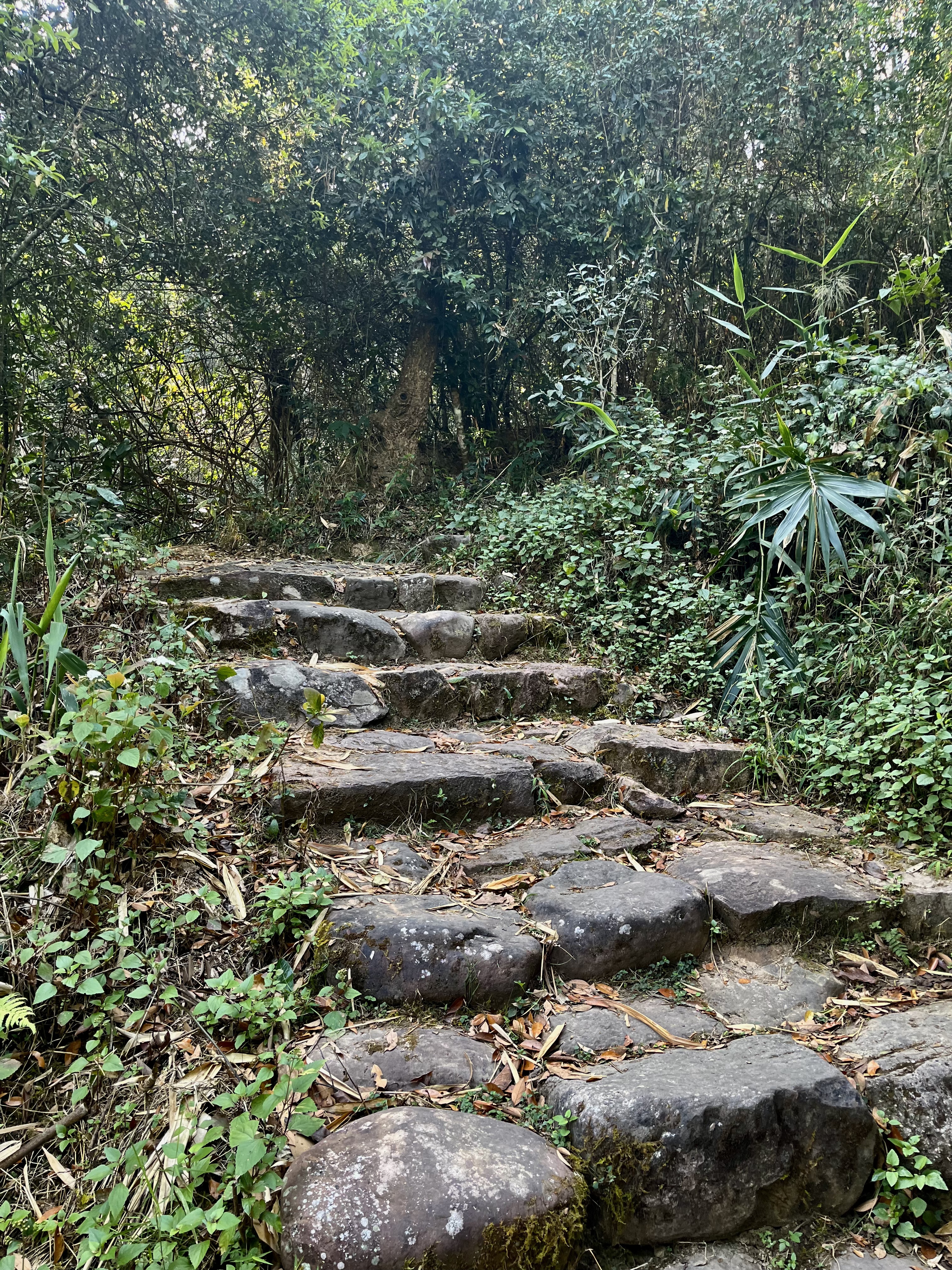 After a couple of uphill hours there is still no temple in evidence, but it is surely near because here is a family descending towards me. They all appear so horrified I feel obliged to set my translate app to eavesdrop: