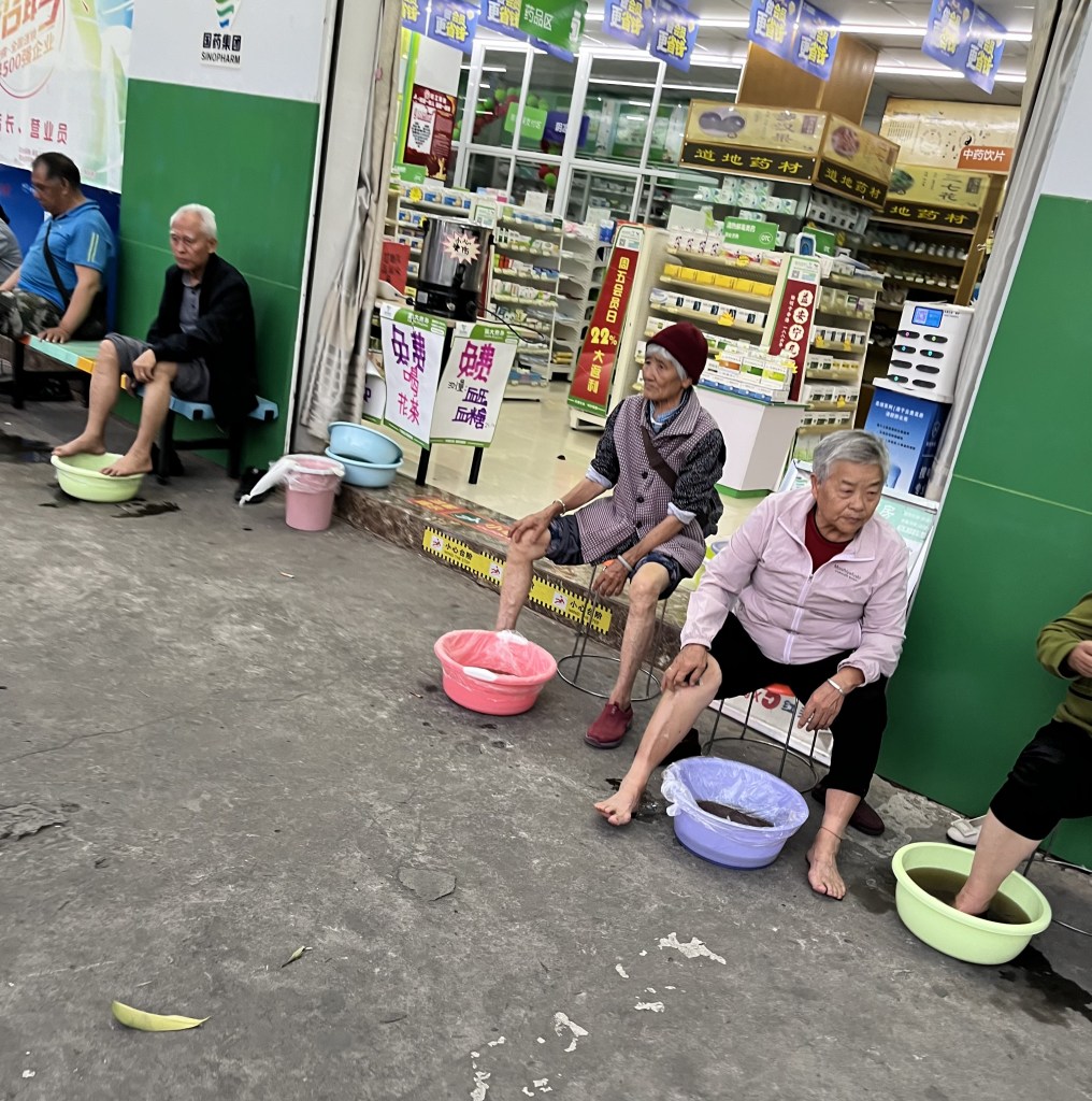 The good (and evidently morose) citizens of Pu’er do enjoy soaking their feet outside the pharmacy after work. We can only hope that the murk is due to an extraneous additive.